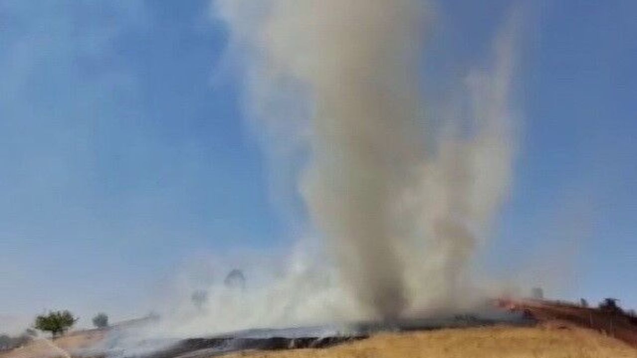 Adıyaman’da çıkan anız yangınlarında oluşan hortum, duman hortumuna dönüştü.