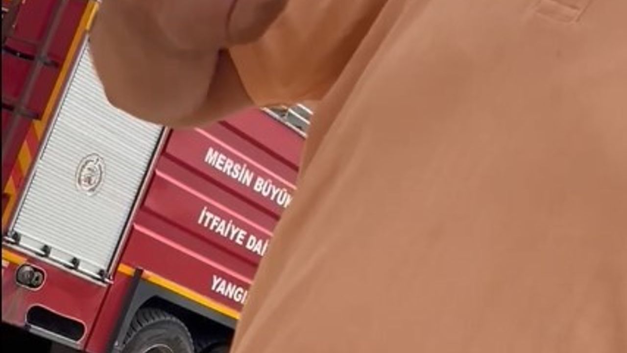 Mersin’de bir depoda çıkan ve saatlerce süren mücadele sonrası söndürülen yangın bölgesinde çekim yapan gazetecilere,