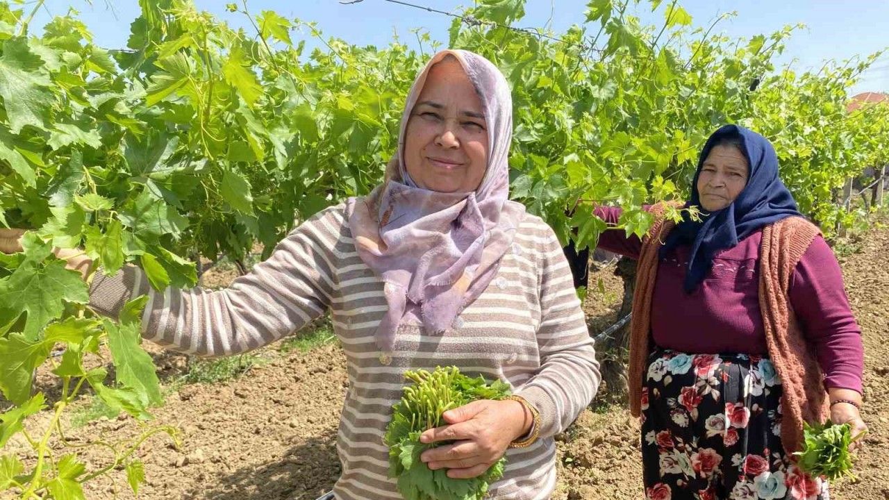 Manisa’nın Alaşehir ilçesinde, dünyaca ünlü Sultaniye üzümünün hasat dönemi yaklaşırken, üzüm üreticileri için asma yaprağı önemli bir gelir kaynağı haline geldi. Üreticiler, sabahın erken saatlerinde bağlardan topladıkları yaprakları toptancılara satarak günlük ihtiyaçlarını karşılıyor. Toptancılara kilosu 70 TL’den satılan yapraklar ise pazarda 200 TL’ye kadar alıcı buluyor.