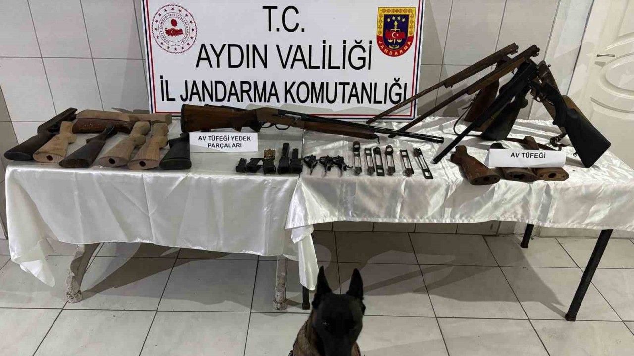 Aydın genelinde jandarma ekiplerince ruhsatsız silah satışının engellenmesine yönelik çalışma gerçekleştirildi. Edinilen bilgiye göre Bozdoğan ilçesi Madran Mahallesi’ndeki ikametinde bir şahsın, ruhsatsız tüfek tamiri ve elindeki parçalarla tüfek yaptığı, tespit edildi. Yapımını tamamladığı tüfekleri satışa sunmak üzere müşteri arayışında bulunduğu öğrenilen şahsın ikameti ve bağ evinde bomba arama köpekleri ile birlikte yapılan aramalarda 1 adet ruhsatsız tam otomatik av tüfeği, 3 adet ruhsatsız av tüfeği, 13 adet tüfek kabzası, 3 adet tüfek gövdesi, 6 adet tüfek mekanizması, 4 adet tabanca kabzası, 3 adet tetik tertibatı, 1 adet tabanca üst kapağı, 3 adet tabanca şarjörü ve 31 adet 9 mm fişek ele geçirildi. Yakalanarak gözaltına alınan şüpheli şahıs hakkında adli işlem başlatıldı.
