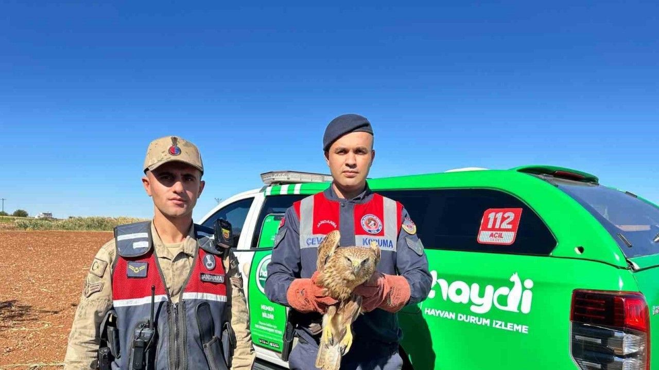 Kilis’in Elbeyli ilçesi Sağlıcak köyü yol kenarında, jandarma ekipleri tarafından uçamayacak halde bulunan yaralı Kızıl Şahin kuşu koruma altına alındı.