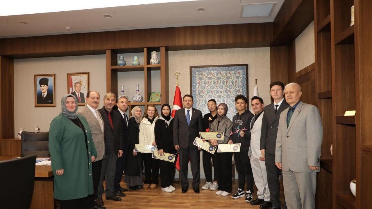 Kütahya Valisi Musa Işın, ulusal ve uluslararası yarışmalarda derece elde eden öğrencileri ve öğretmenlerini valilik makamında kabul etti.
