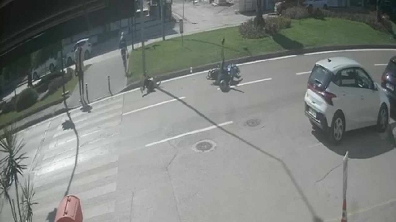 Bursa’da araçlara yeşil ışık yanmasına rağmen karşıya geçmek için acele eden kadına motosiklet çarptı. Kazanın etkisiyle hem kadın, hem de motosiklet sürücü yere savruldu. Kaza anı kameraya anbean yansıdı.