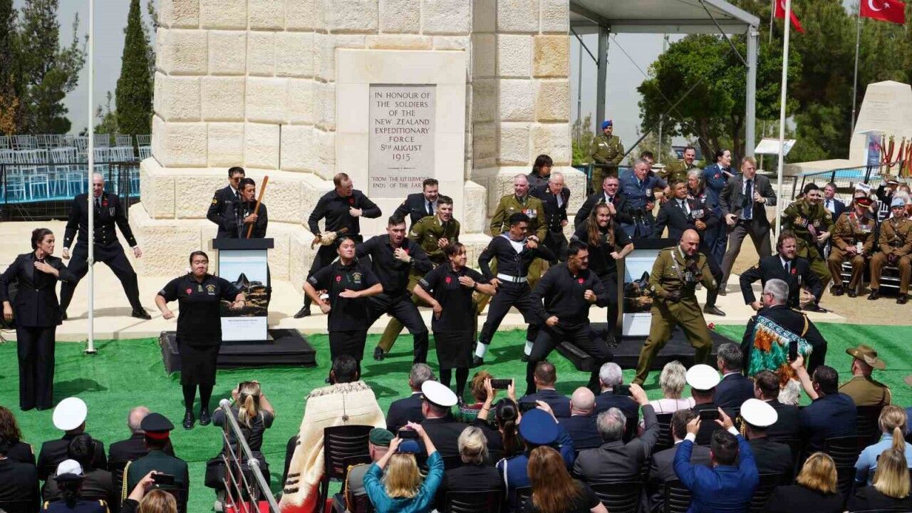 Çanakkale Kara Savaşları’nın 109. yıl dönümü nedeniyle Conkbayırı’nda düzenlenen anma töreninde Yeni Zelanda askerleri ‘haka’ dansı yaptı.