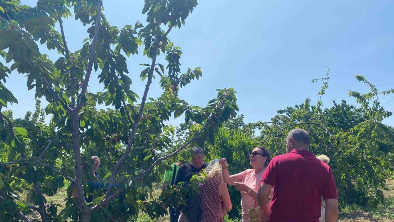 Kirazlı’da köylü kadınların geleneksel kıyafetlerini giyen Perihan Savaş, bahçede üreticilerle birlikte kiraz topladı, meyveleri tek tek inceledi. Samimi tavırlarıyla ilgi gören sanatçı, köy kahvesinde vatandaşlarla çay içip sohbet etti. Hayranlarının fotoğraf isteklerini de geri çevirmeyen Savaş, bol bol hatıra pozları verdi.