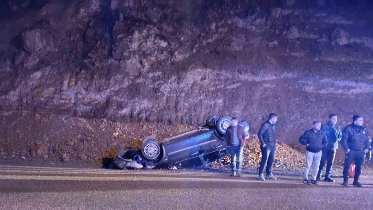 Gümüşhane-Trabzon kara yolunda düşen kayalara çarpmamak için manevra yapan otomobil kontrolden çıkarak ters döndü. Kazada 2 kişi yaralandı.