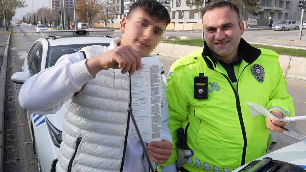 Uygulama noktasından yapılan anons üzerine bölgeye sevk edilen ekipler, sürücünün ehliyetsiz olduğunu belirledi. Yeni aldığı aracı ilk kez kullanan Umut Tursun'a 18 bin 677 lira idari para cezası uygulanırken, ceza makbuzunu tutarak polislerle hatıra fotoğrafı çektirmek istemesi ve ardından sigara talebinde bulunması dikkat çekti. İşlemlerin tamamlanmasının ardından araç trafikten men edilerek otoparka çekildi.
