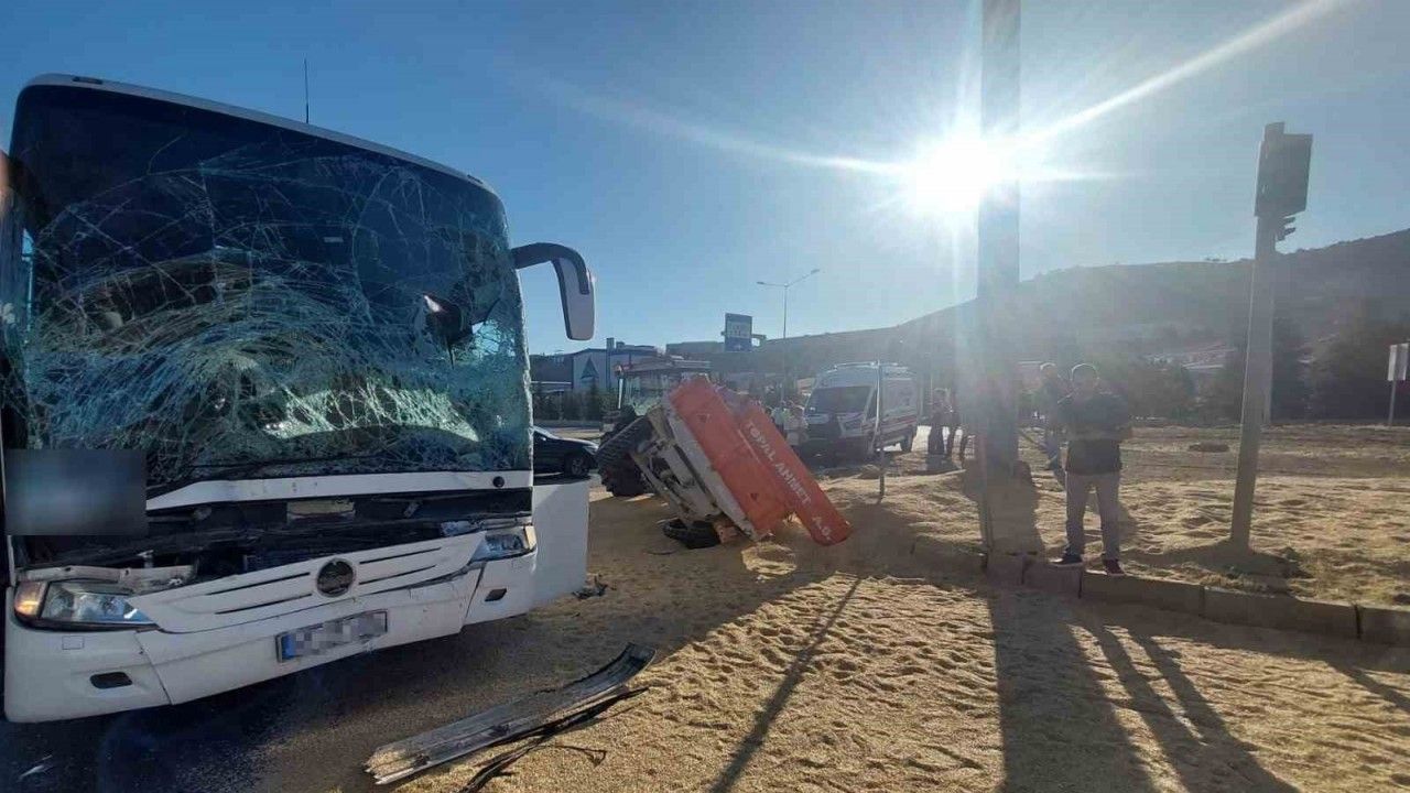 Kaza, sabah saatlerinde Kırıkkale’nin Yahşihan mevkiinde meydana geldi. Didim-Boğazlıyan seferini gerçekleştiren özel bir firmaya ait yolcu otobüsü ile traktör çarpıştı. Kırıkkale OSB kavşağında yaşanan çarpışmanın şiddetiyle römork devrilirken, otobüste bulunan şoför ve iki yolcu ise hafif yaralandı. İhbar üzerine kaza yerine gelen 112 ekipleri yaralılara ilk müdahaleyi yaptı. Hayati tehlikelerinin bulunmadığı öğrenilen yaralılar daha sonra çevredeki hastanelere sevk edildi.