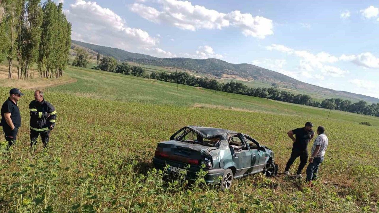 Çorum’un Alaca ilçesinde yoldan çıkan otomobilin tarlaya uçtuğu kazada 1 kişi yaralandı.