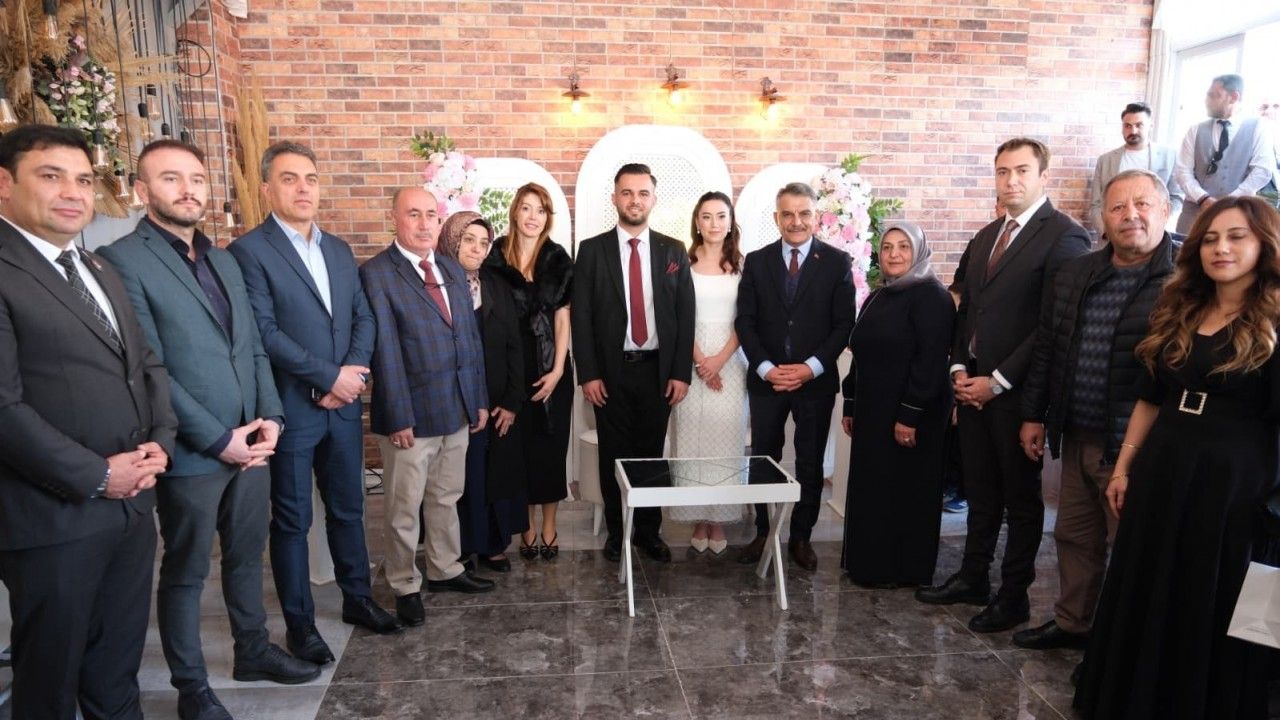 Ailelerin gurur ve mutluluğunun bir arada yaşandığı törene, Yozgat Valisi Mehmet Ali Özkan da katılım sağlayarak genç çiftin heyecanına ortak oldu.