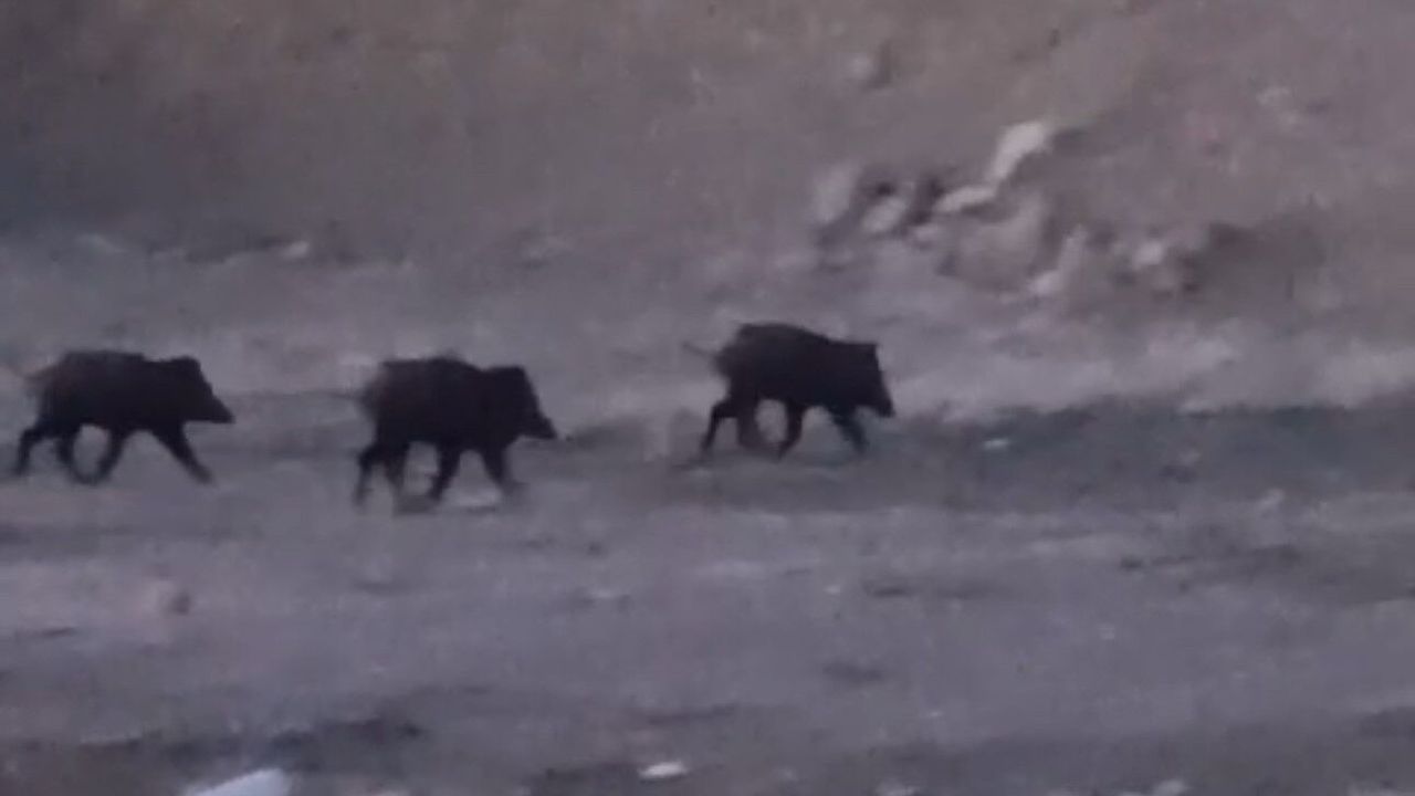 HAKKARİ (İHA) - Hakkari'nin Yüksekova ilçesinde sürü halinde dolaşan yaban domuzları, cep telefonu kamerasıyla kayıt altına alındı.