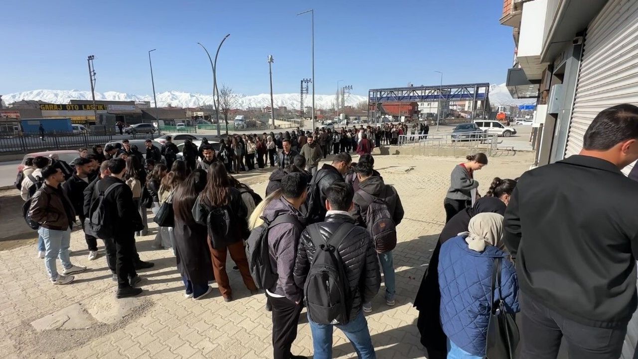Hakkari'nin Yüksekova ilçesinde öğrenciler deprem riski nedeniyle yıkılıp kiralık bir binada hizmet veren kütüphanenin önünde sabahın ilk ışıklarıyla uzun kuyruklar oluşturdu.