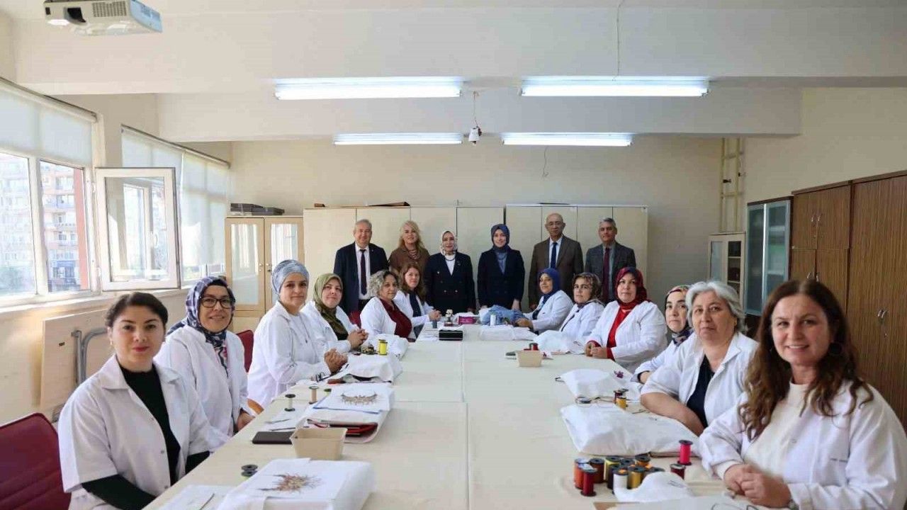 Vali Cahit Çelik’in eşi Nermin Çelik, Valilik Özel Kalem Müdürü Nebahat Bozkurt, Niğde İl Milli Eğitim Müdürü Elif Özbek, Mersin İl Milli Eğitim Müdürü Muhammed Özdemirci, Mersin İl Milli Eğitim Müdür Yardımcısı Nazmi Kendigelen, Akdeniz İlçe Milli Eğitim Müdürü Saim Demir ve Niğde Halk Eğitimi Merkezi Müdürü Orhan Çetin’den oluşan heyet, Enstitü bünyesindeki atölyelerde yürütülen çalışmaları yerinde inceledi. Nermin Çelik ve beraberindeki heyet; ’Zamanın ve Zarafetin İzinde Niğde’ teması kapsamında hazırlanan tasarımlar, üretim süreçleri ve sergiye yönelik çalışmalar hakkında detaylı bilgi aldı. Usta öğreticiler ve öğretmenlerin titizlikle ortaya koyduğu eserler incelenerek, emeği geçenlere teşekkür edildi.