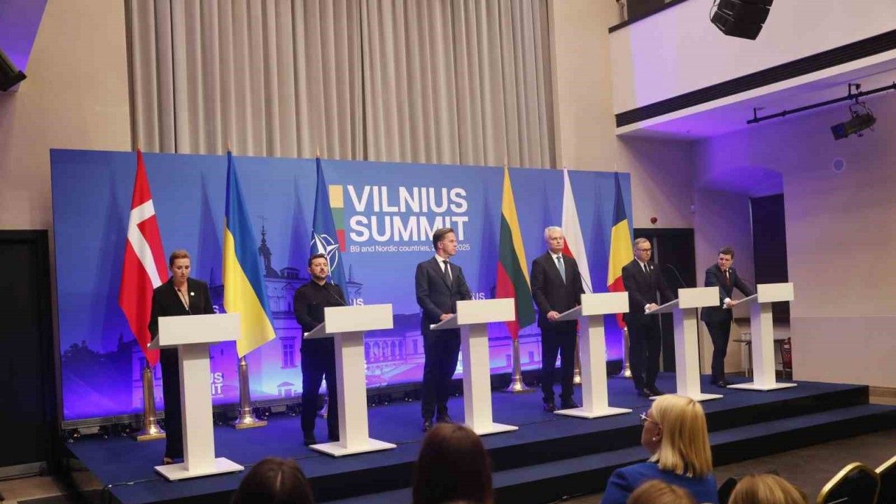NATO Genel Sekreteri Mark Rutte, Ukrayna Devlet Başkanı Vladimir Zelenskiy, Litvanya Cumhurbaşkanı Gitanas Nauseda, Polonya Cumhurbaşkanı Andrzej Duda, Romanya Cumhurbaşkanı Nicusor Dan ve Danimarka Başbakanı Mette Frederiksen, Bükreş Dokuzlusu ve kuzey ülkelerinin liderleri, Litvanya’nın başkenti Vilnius’taki zirvenin ardından ortak basın toplantısı düzenledi. Ukrayna Devlet Başkanı Vladimir Zelenskiy, toplantıda liderlere cephedeki duruma ve dün Rusya’daki 5 bölgede hava üslerine düzenlenen dron saldırısına ilişkin bilgi verdiğini ifade ederek, "Örümcek Ağı operasyonu, modern savaşın gerçekte nasıl göründüğünü ve teknolojide önde olmanın neden bu kadar önemli olduğunu açıkça ortaya koydu" dedi.