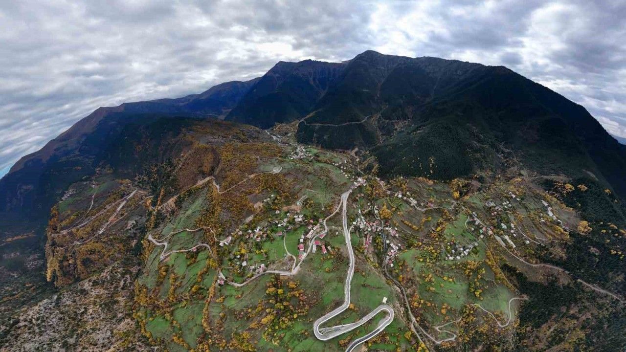 Gümüşhane’nin Torul ilçesindeki Zigana Dağı’nın yamaçlarına kurulu olan ve tarihi İpek Yolu güzergahında yer alan Zigana köyü, sonbaharın gelmesiyle birlikte adeta bir renk tuvaline dönüştü. Trabzon’dan Gümüşhane’ye doğru yola çıkan Mahmut ve Hande Bayrak çifti ise, bu manzarayı görebilmek için Zigana Tüneli yerine virajlı tarihi Zigana yolunu tercih etti.