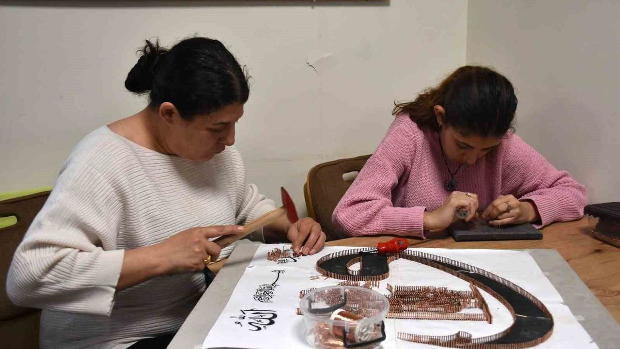 Sürekli ilaç kullanan ve evden de kolay kolay çıkmayan Beyza Nur Küçüktürkmen, bir yıl önce mahallelerindeki Şahinbey Millet Camii ve Külliyesi içinde yer alan filografi kursundaki kadınların yaptıkları tabloları tek tek inceledi.