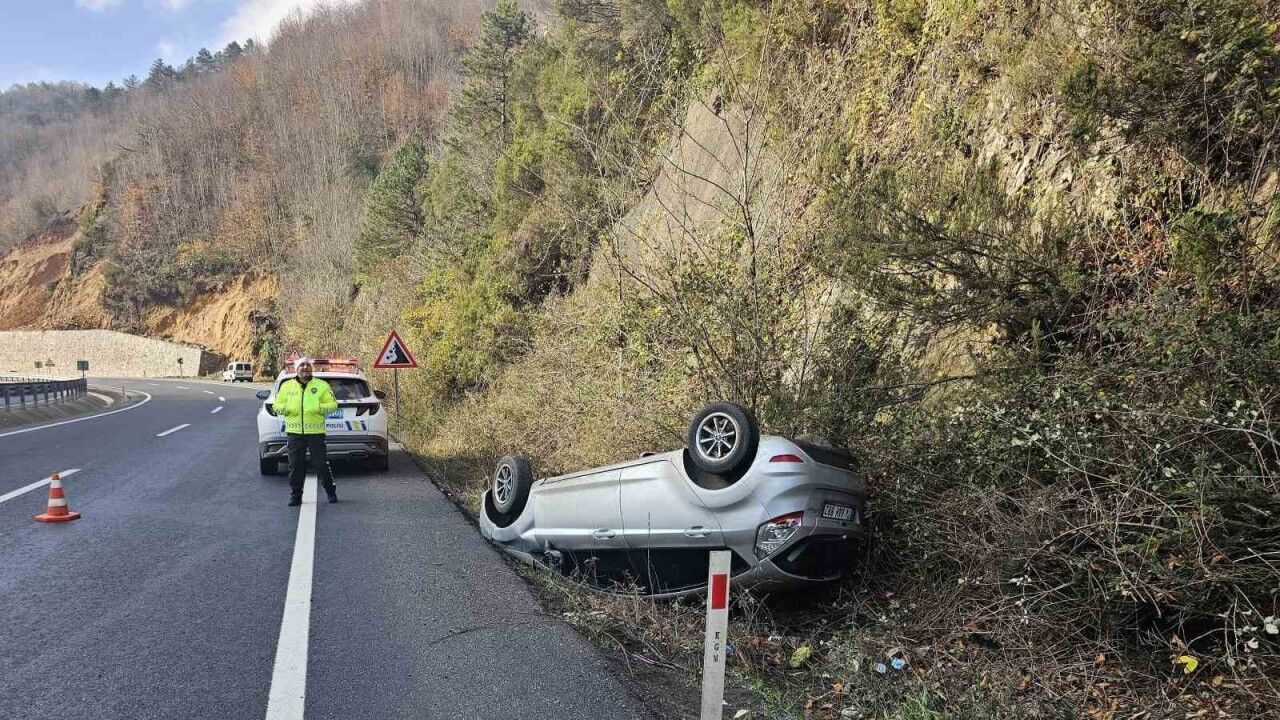 Zonguldak-Ereğli karayolunda meydana gelen kazada bir otomobil takla atarak durabildi.
