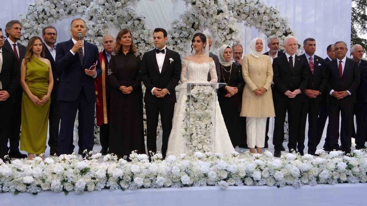 Nikah sırasında söz alan İçişleri Bakanı Ali Yerlikaya, evlilik cüzdanını Berna Gökmen’e teslim ederken genç çifte Cumhurbaşkanı Recep Tayyip Erdoğan’ın ailelere yönelik temennisini hatırlatarak, "Cumhurbaşkanımızın dediği gibi en az beş çocuk bekliyoruz" ifadelerini kullandı.